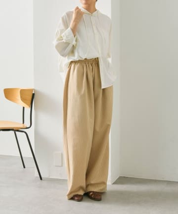 《麻混素材/スリット入り》リネンライクストライプワンピース【SUM1 STYLE(スミスタイル)】