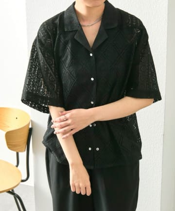《透け感/花柄》開襟レースシャツ【SUM1 STYLE(スミスタイル)】