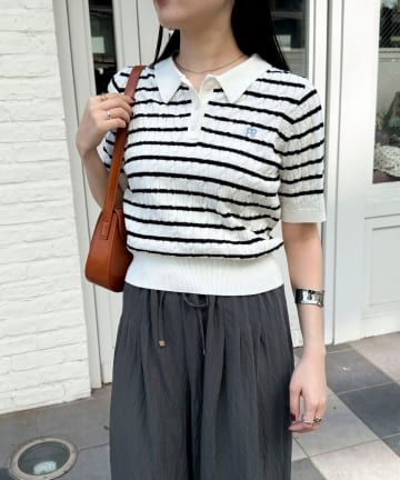 【大人気シリーズの新型登場!】FR刺しゅうケーブル柄半袖ポロ衿プルオーバーニット