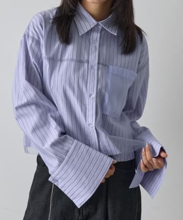 【2サイズ展開!】ワイドスリーブストライプシャツ