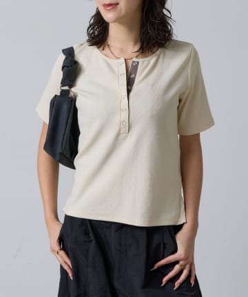 テレコヘンリーネック半袖トップス