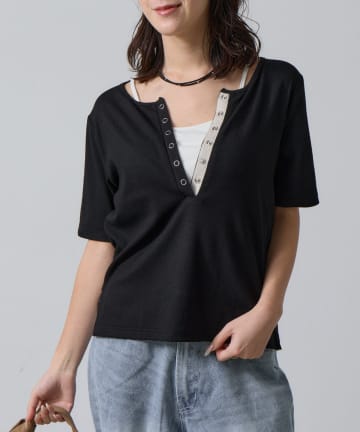 レイヤードライクヘンリーネックロンT