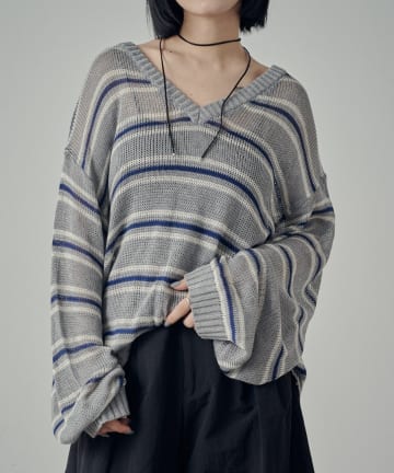 Vネックボーダーシアーニット