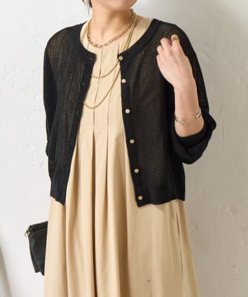 キーネックリネンワンピ