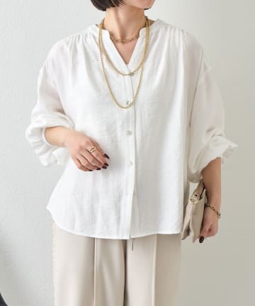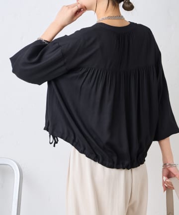 袖シャーリングクルーブラウス
