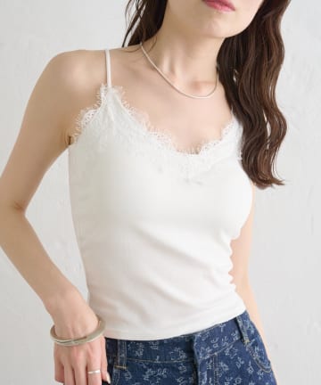 【大人っぽいレイヤードスタイルに】《新色ピンク》レースサテンキャミソール