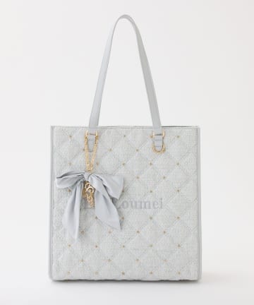 【LouLoumei】キルティングビジューリボンチャームキャリーオントート