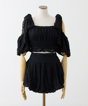 swimwear/シャーリングオフショル-バルーンミニスカート(3点セット)