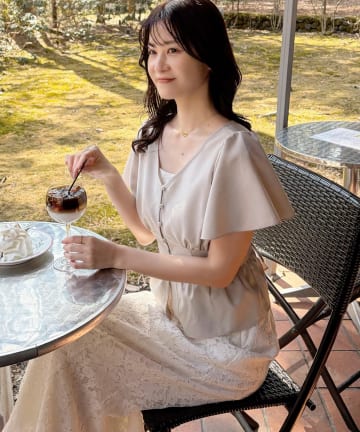 レイヤード風レース付きトップス
