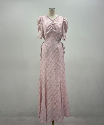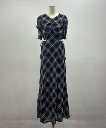 【LouLoumei】サイドカットデザインチェックワンピース
