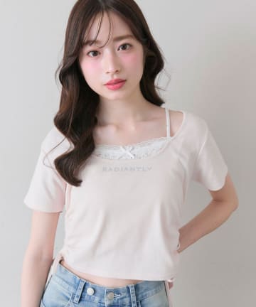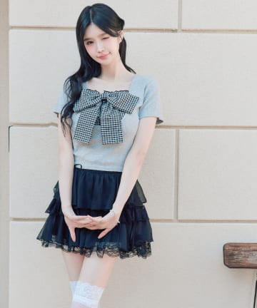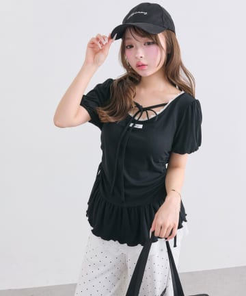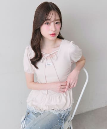 リボン映え半袖トップス