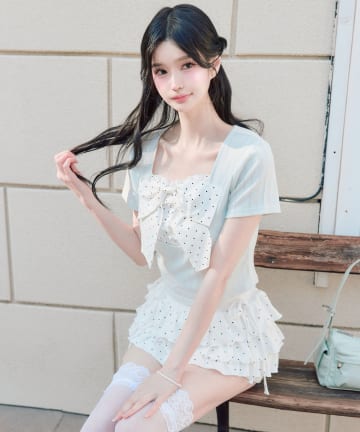 肩リボンミニキャミワンピとボレロセット