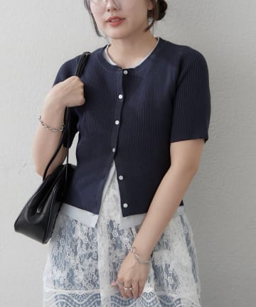 【chipiセレクト】ハートボタン袖レースラメカーデ