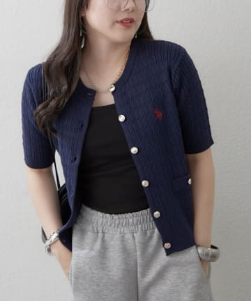 【U.S. POLO ASSN. ×RMAF】ケーブル半袖カーディガン