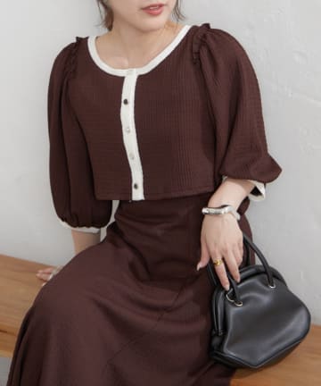 【2枚SET】配色カットジャガードアボレロ×キャミワンピース