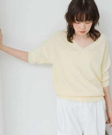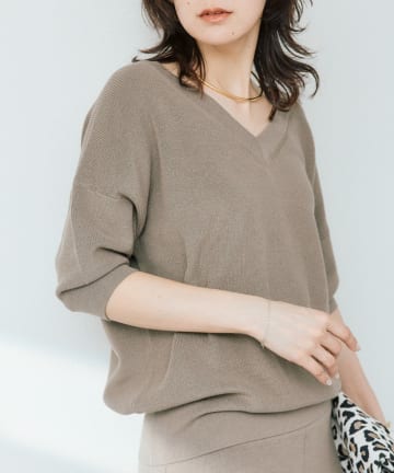 【手洗い可能】ギマコットン片畦Vネックニット