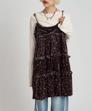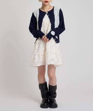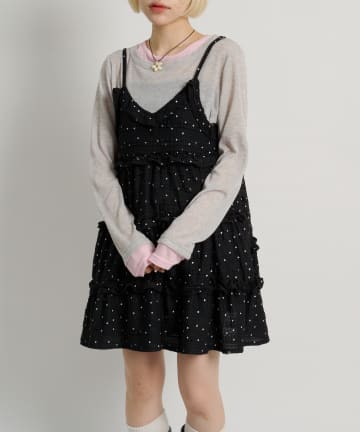 【新色ドット柄が登場!】【季節問わず使える】立体レースミニキャミワンピース