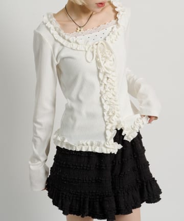 【つけ襟取り外し可能2WAY♪】フリル衿付きPUレザージャケット