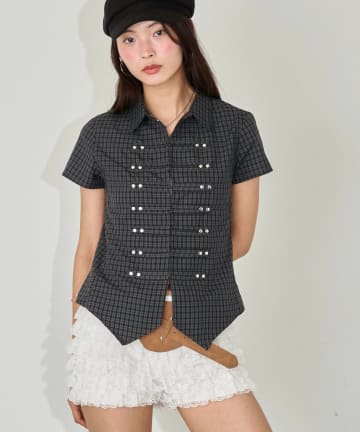 KOOKY'Nユリ紋章スタッズ加工チェックシャツ
