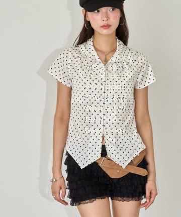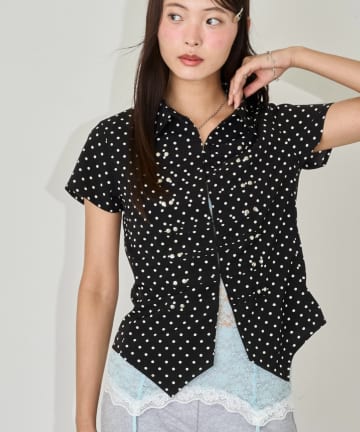 【WEB限定】ハトメオフショル半袖トップス(無地/ドット)