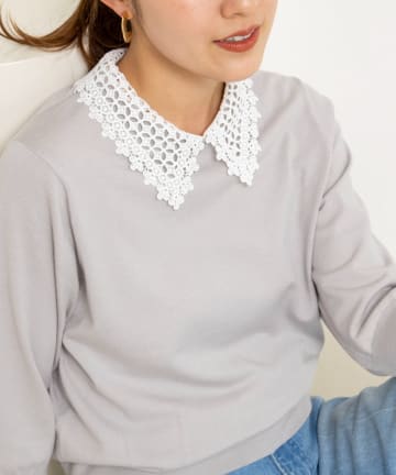 《手洗い可能》襟レース取り外し6分袖プルオーバー
