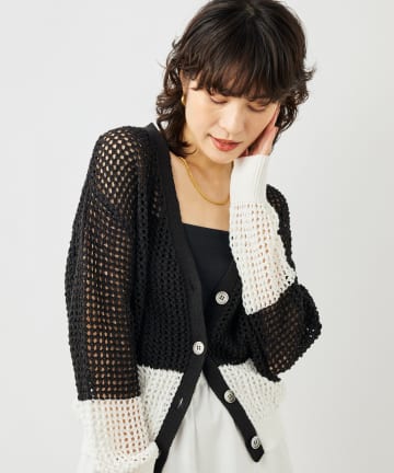 《手洗い可能》テープメッシュ編Vネックカーディガン