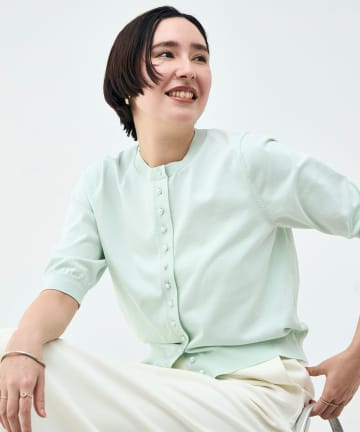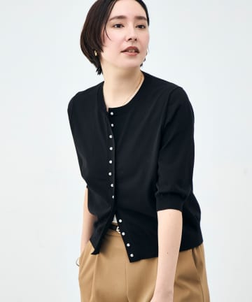 《手洗い可能》メッシュスパンコール6分袖カーディガン