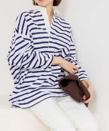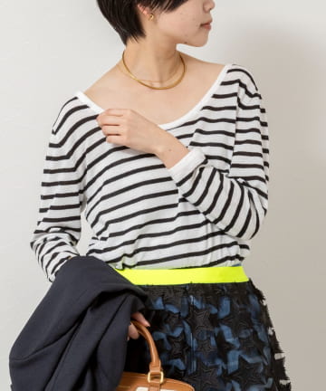 ウォッシャブルブークレーボーダーバックUネックプルオーバー