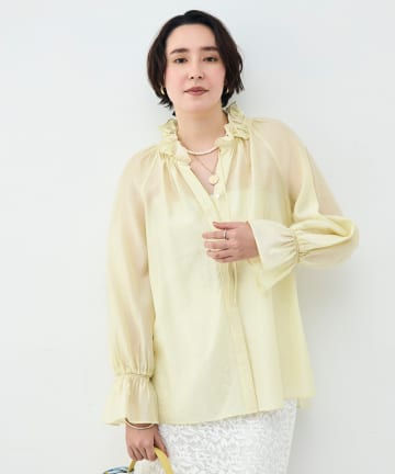 ウォッシャブルシアーオーガンジーフリルネックブラウス