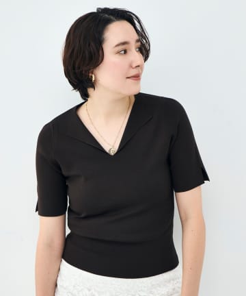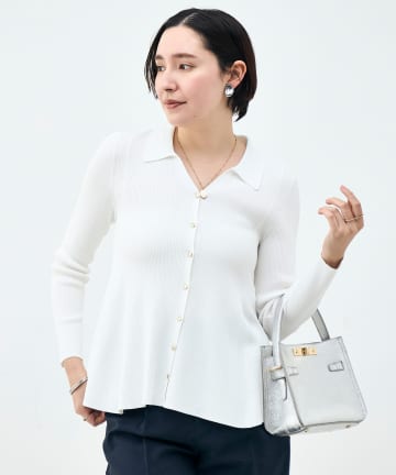 《手洗い可能》リブフレアスキッパーポロ襟カーディガン
