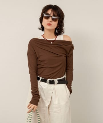 【MAQWEL/マクウェル】ウォッシャブルレイヤードドレープロンT