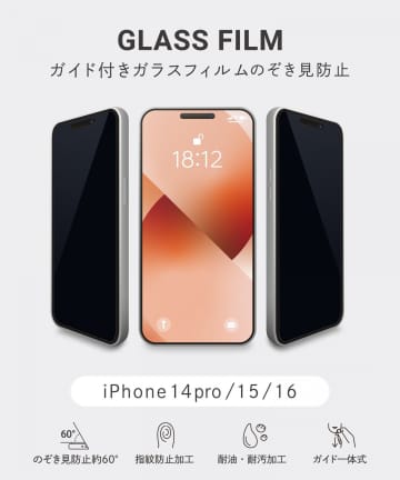 ガイド付きガラスフィルムのぞき見防止