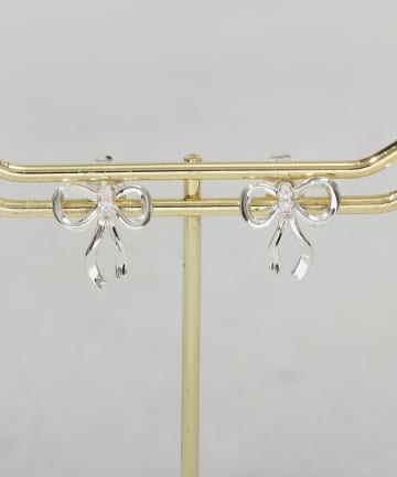 ストーンリボンワンタッチピアス