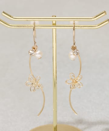 ワイヤーフラワーS字ピアス