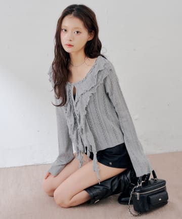 【SALON by Chico】フリルドッキングクロシェフレアニット