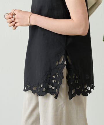 裾レースリネンブラウス