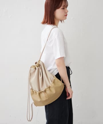 撥水ナイロン×フェイクレザーサックバッグ