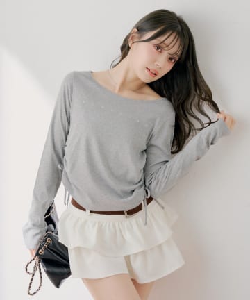 【SALON by Chico】ドットチュールデザインドッキングペプラムロンT