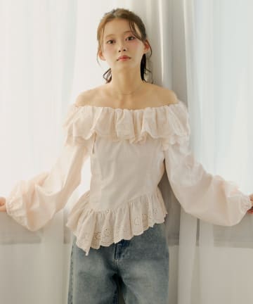 【SALON by Chico】前後2wayダブルレースフリルオフショルニット