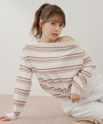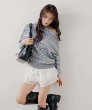 【SALON by Chico】前後2wayダブルレースフリルオフショルニット