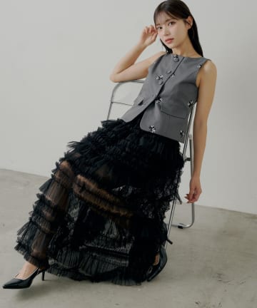 【10/23(木)0時販売】ランダムチュールフレアスカート