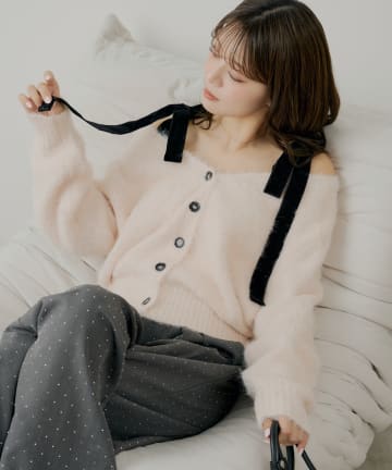【10/23(木)0時販売】肩リボンショルダースリットオフショルニット