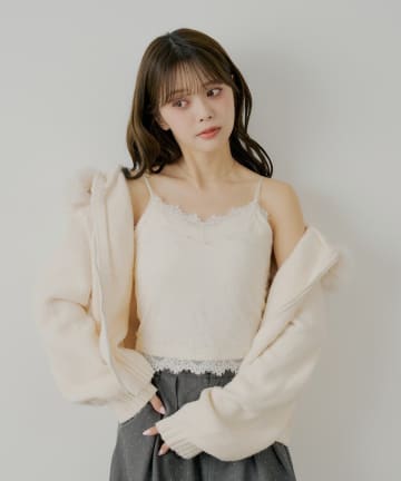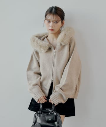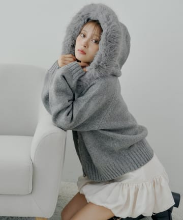 【SALON by Chico】フードファーWジップニットカーディガン
