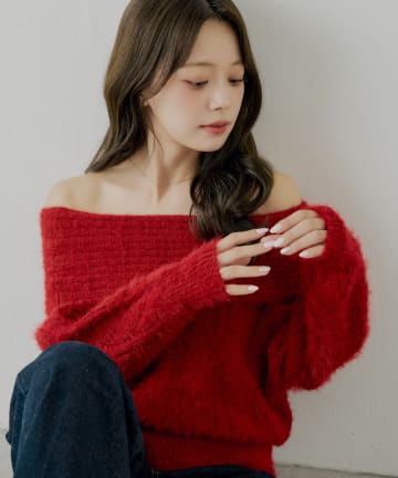 【10/23(木)0時販売】リブデザインオフショルルーズニット