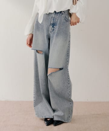 【SALON by Chico】フロントスリットストレートフレアデニム