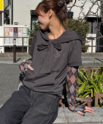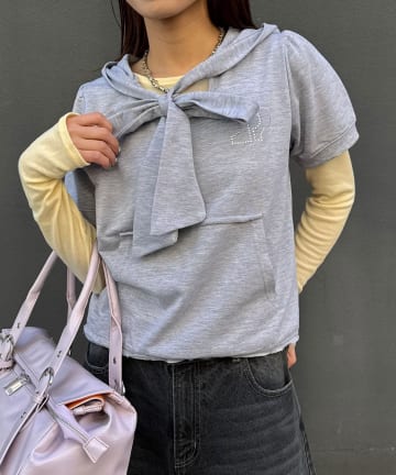【neutral】リボンスリーブレースレイヤードTシャツワンピ