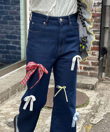 【HELLO.SANFRANCISCO/ハローサンフランシスコ】カラフルリボンフレアデニム