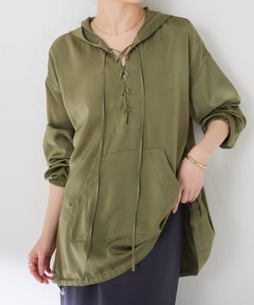 【大人リラクシー】レースアップアノラックブラウス