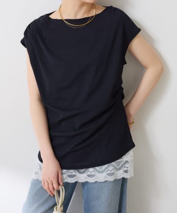 【上品見えカットソー/シアー】アシメタックフレンチカットソー