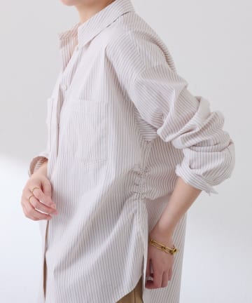 【軽量/体型カバー】ギャザー切替シアーシャツカーディガン